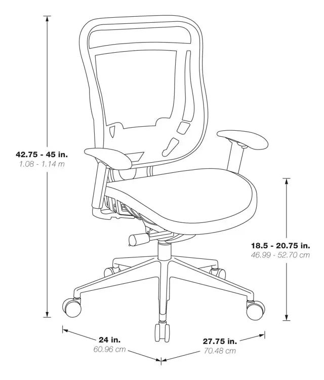 Overall Dimensions: 27.75" W x 24" D x 42.75-45" H