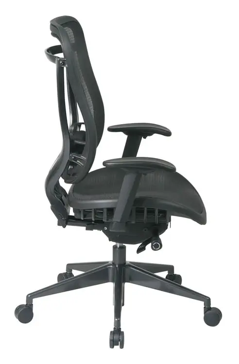 • Breathable Mesh Back and Seat Executive Chair with Adjustable Arms and Lumbar, Seat Slider, and Industrial Steel Finish Angled Base