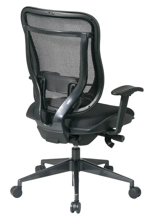 Breathable Mesh Back and Black Mesh Seat Manager Chair with Adjustable Arms and Lumbar, Seat Slider, and Industrial Steel Finish Angled Base.