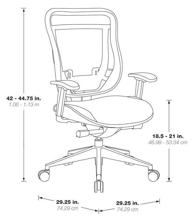 Pneumatic Seat Height Adjustment, Seat Depth Adjustment, 2-to-1 Synchro Tilt with Seat Slider, Tilt Tension, Tilt Lock.