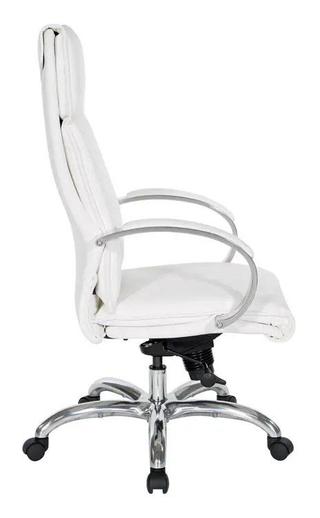 Deluxe High Back Executive Chair with Padded Polished Aluminum Arms, Dual Wheel Carpet Casters and Polished Aluminum Base.