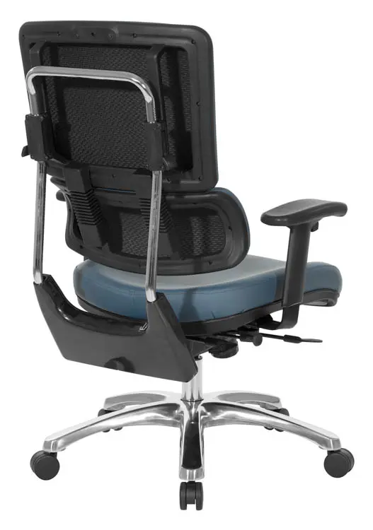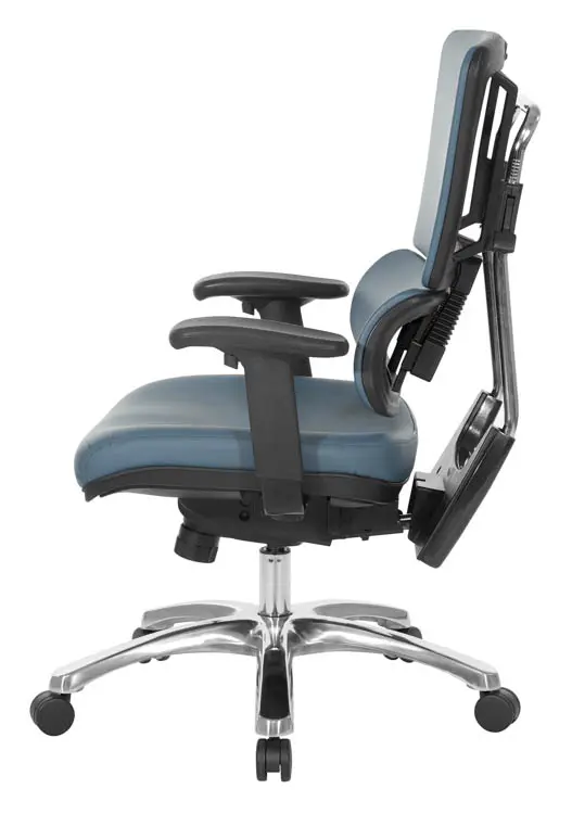 Executive Chair with Polyurethane Seat and Back, Dual Steel Frame Post, Height & Width Adjustable Arms, Adjustable Back, and Polished Aluminum Base.