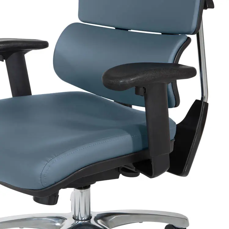 • Executive Chair with Polyurethane Seat and Back, Dual Steel Frame Post, Height & Width Adjustable Arms, Adjustable Back, and Polished Aluminum Base