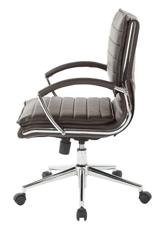 • Mid Back Manager's Faux Leather Chair with Chrome Arms, and Chrome Base
