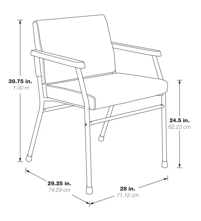 • Big & Tall Large Occupant Patient Chair with Soft PU Arms, Sturdy Titanium Metal Frame