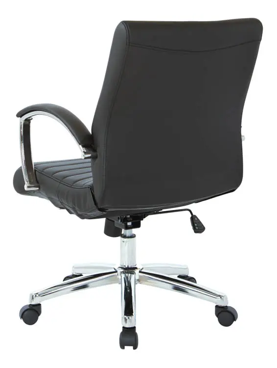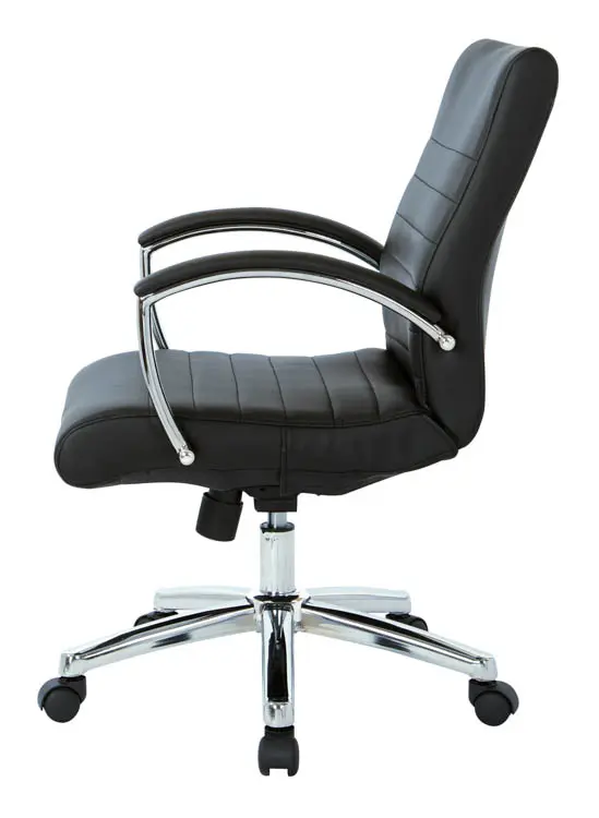 • Low Back Faux Leather Chair with Padded Arms and Chrome Finish Base