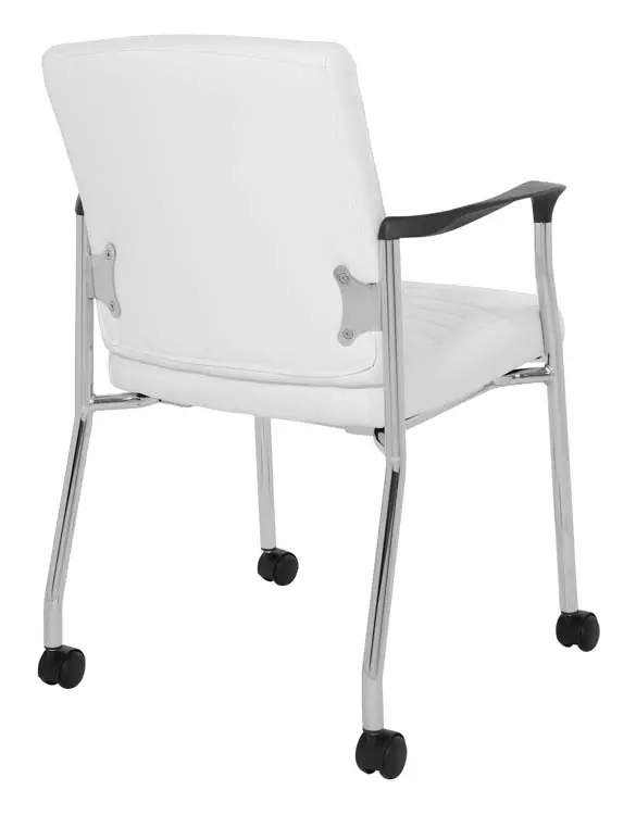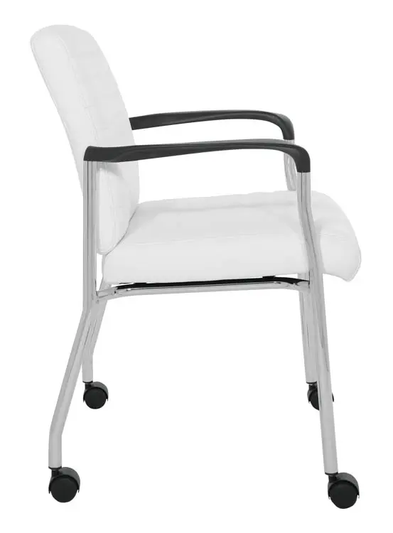 Low Back Faux Leather Guest Chair with Casters, PP Arms and Chrome Finish Frame.