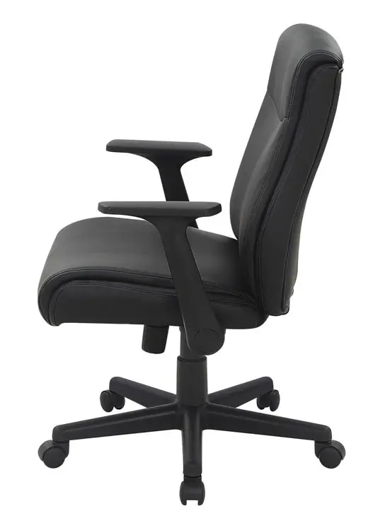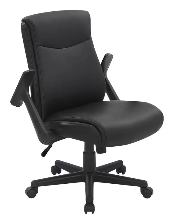 Mid Back Faux Leather Manager Chair with Flip Up Arms and Black Nylon Base.