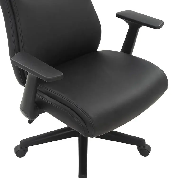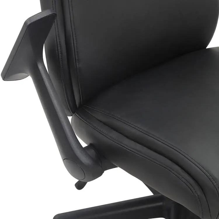 • Mid Back Faux Leather Manager Chair with Flip Up Arms and Black Nylon Base