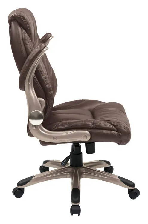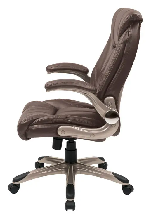 • Mid Back Faux Leather Chair with Padded Flip Arms and Coated Base