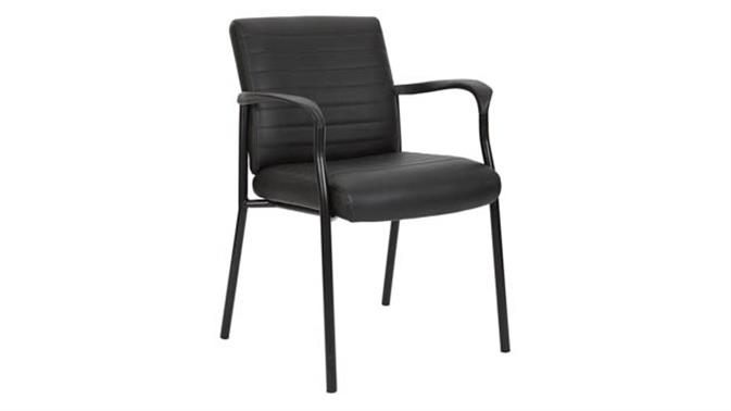 Low Back Faux Leather Guest Chair with PP Arms and Black Finish Frame.