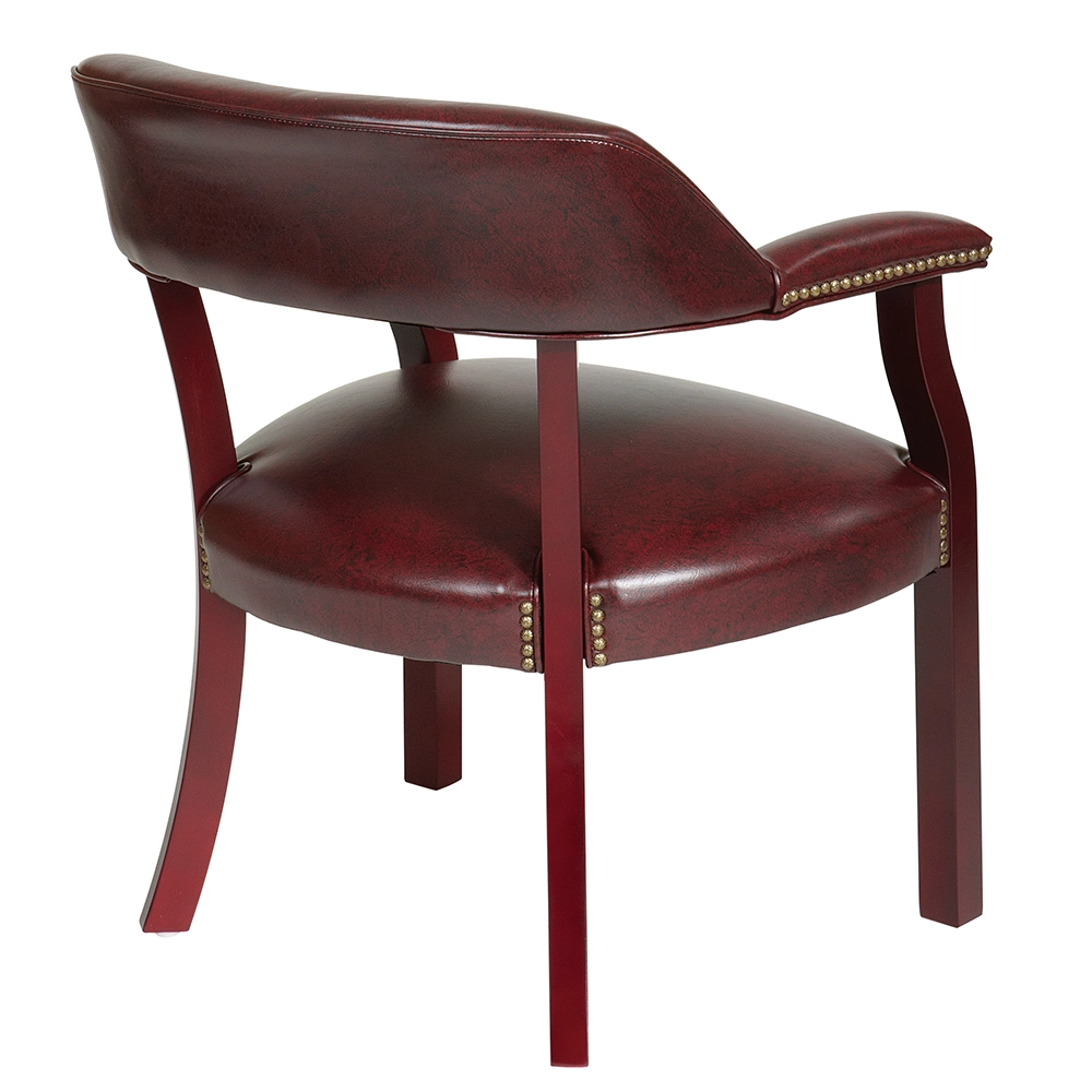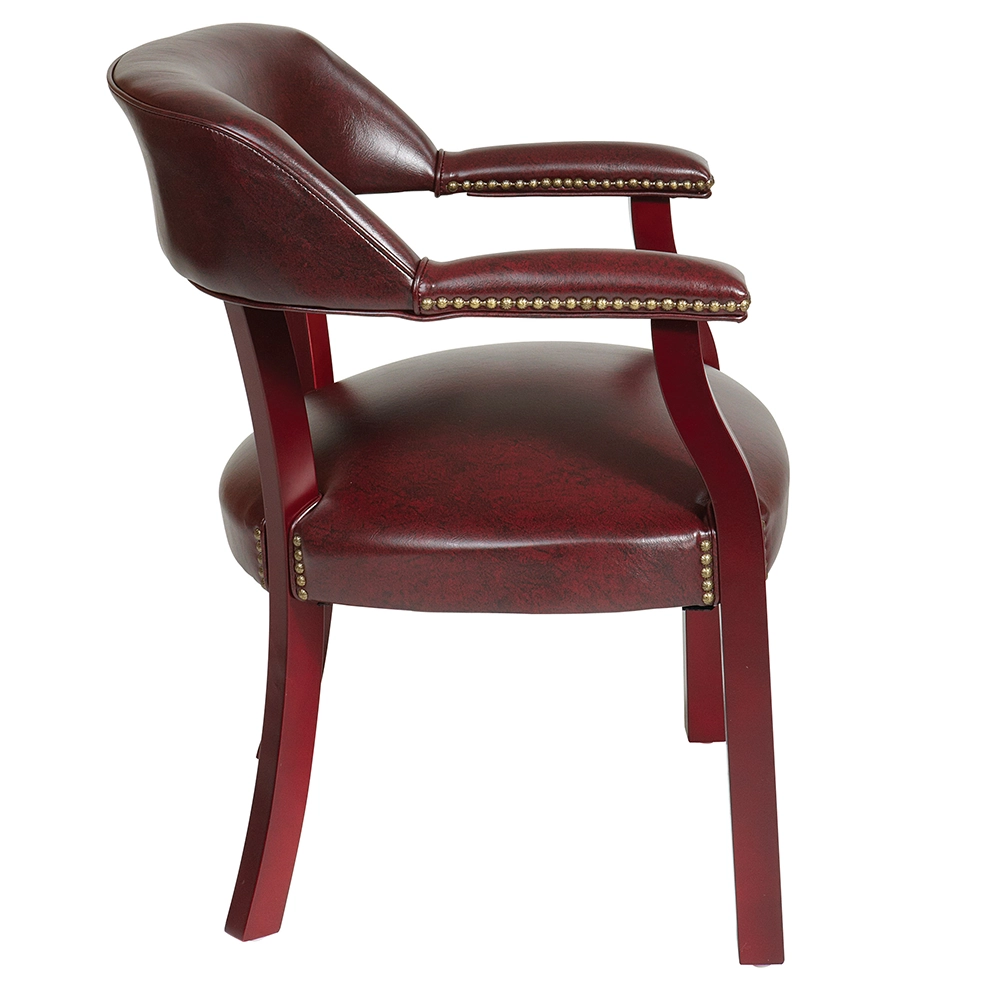 Traditional Guest Chair with Wrap Around Back, Royal Cherry Finish Frame and Brass Finish Nail Trim.