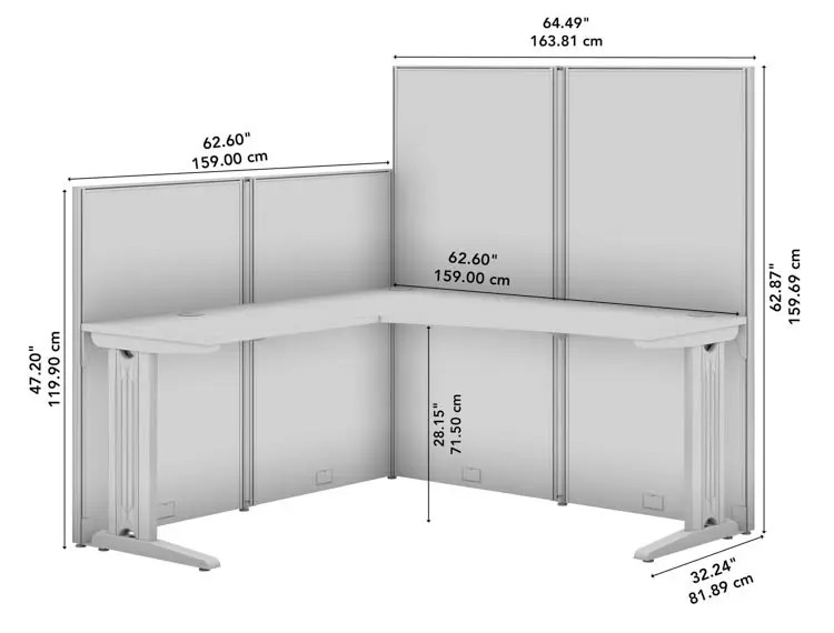 In addition to the desk, the workstation includes two 48"H and two 63"H cubicle panels, along with all necessary hardware.