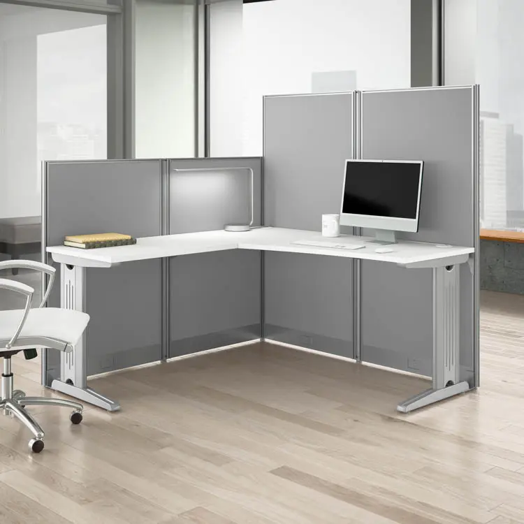 Create an efficient, organized workspace in a matter of minutes with the Bush Business Furniture Office in an Hour 65"W x 65"D L Shaped Cubicle Workstation.