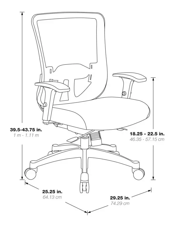 Features: Pneumatic Seat Height Adjustment, 2 -to -1 Synchro Tilt, Tilt Tension, Tilt Lock and Seat Slider.