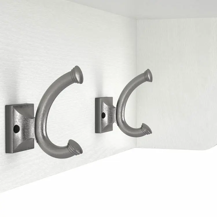 The wall shelf includes six Weathered Nickel coat hooks for hanging jackets, hats, scarves and more.