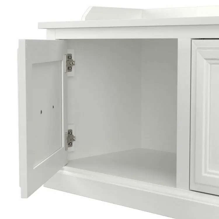 • Cabinet doors with Euro-style hinges open to reveal two compartments