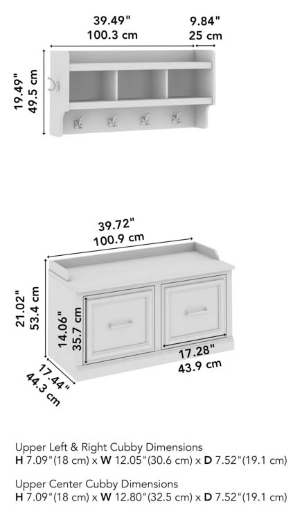 • Bundle includes: 40" W Shoe Storage Bench with Doors, 40" W Wall Mounted Coat Rack with Shelf
