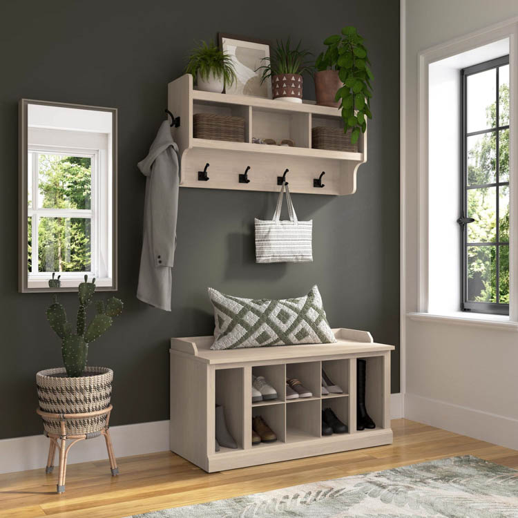 40in W Shoe Storage Bench with Shelves and Wall Mounted Coat Rack by Bush Furniture