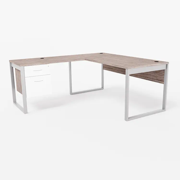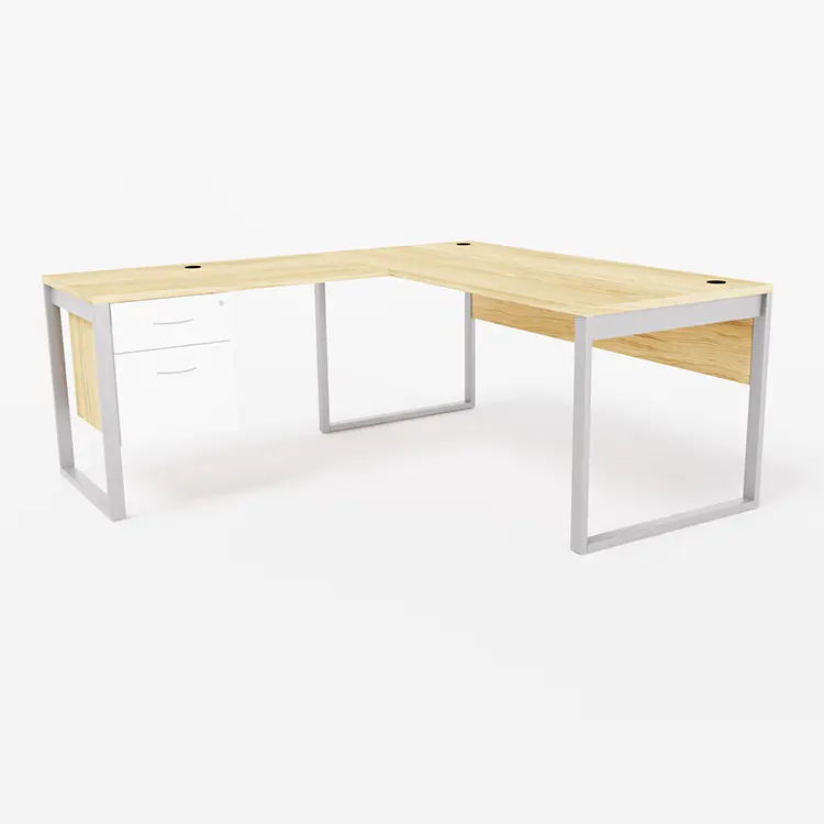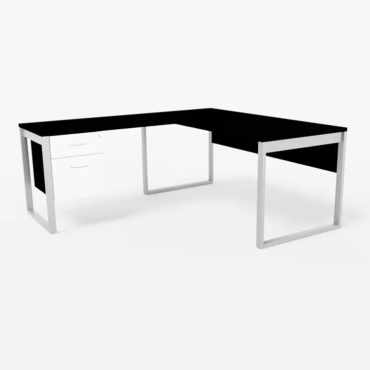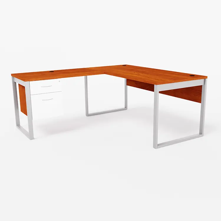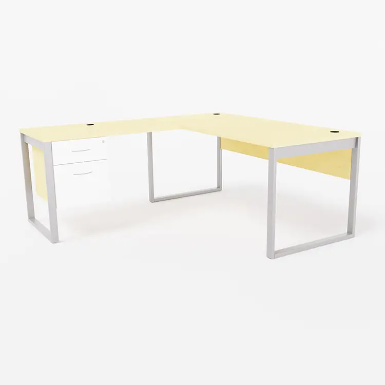 • 72in W x 72in Metal Leg L-Desk with Hanging 2 Drawer Pedestal