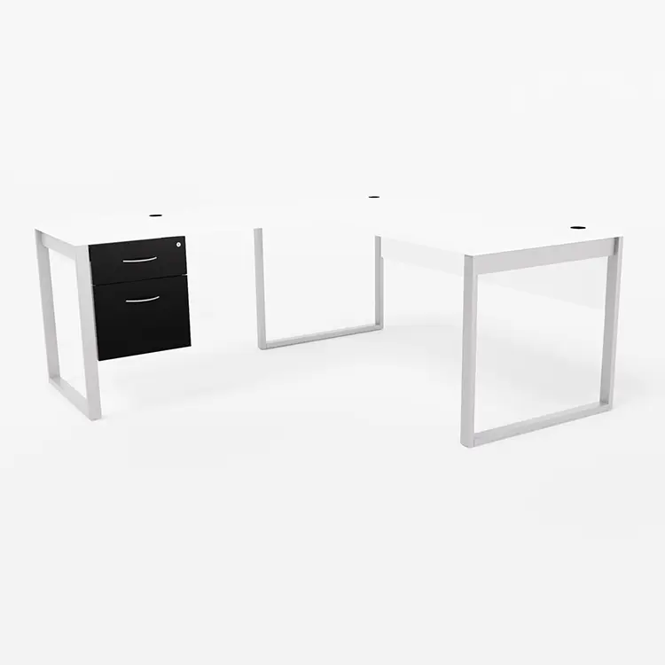 72in W x 72in Metal Leg L-Desk with Hanging 2 Drawer Pedestal by WFB Designs