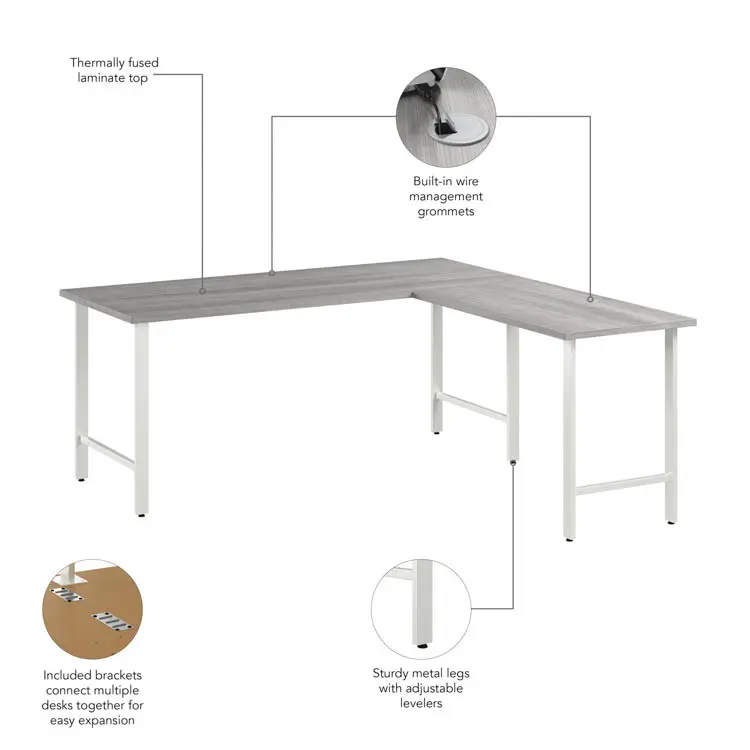 • Sturdy metal legs support the corner desk throughout years of everyday use; adjustable levelers compensate for uneven floors