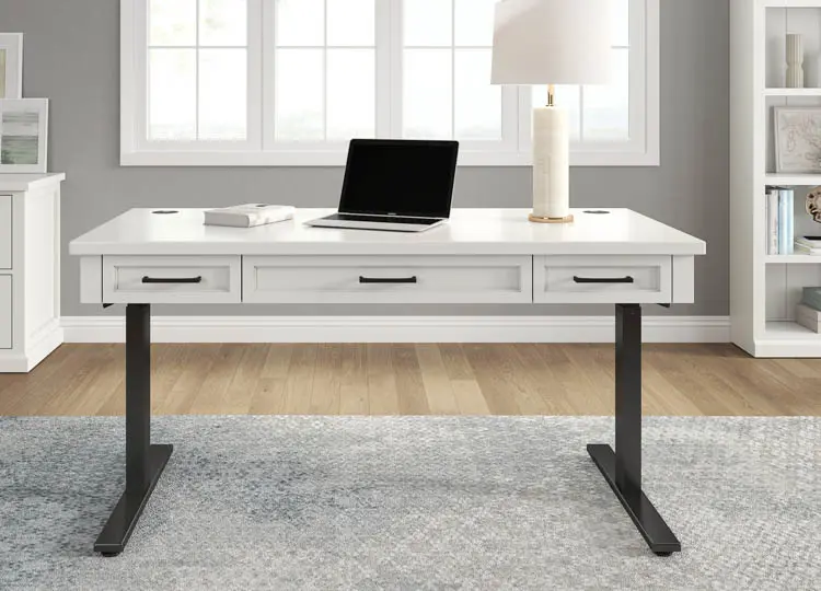 Ergonomic design and current technology have been thoughtfully integrated into this collection with adjustable height desks and built-in power centers.
