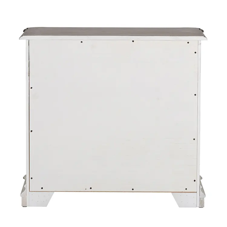 Crafted of poplar solids with white oak and birch veneers, this piece features canted corners and two fully stained full extension drawers with a lock system keeping valuables secured, wood framed drawer fronts, bead molding, and is accented by bail pull hardware in an antiqued pewter.