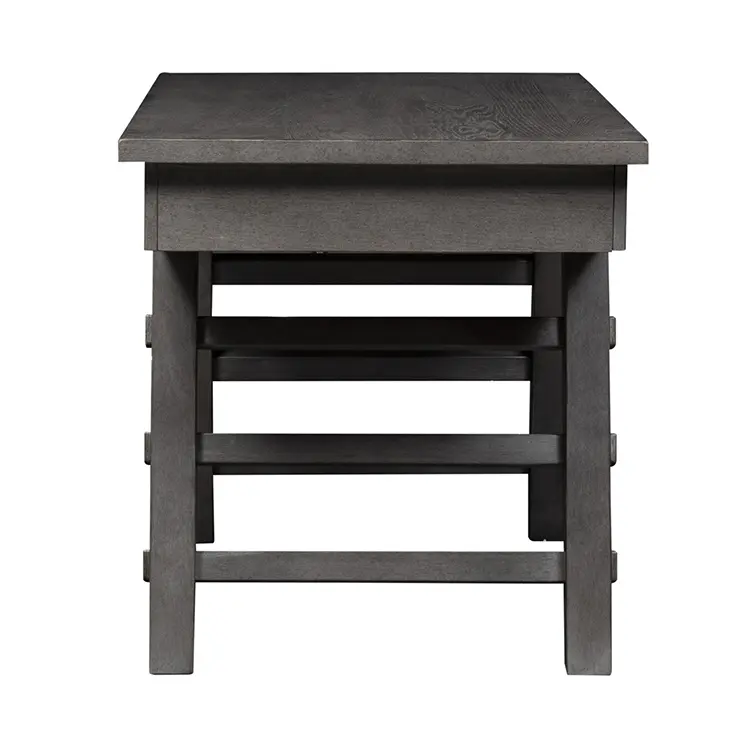 The writing desk features fully stained full extension drawer, slat accents on the sides, and heavy block splayed legs.