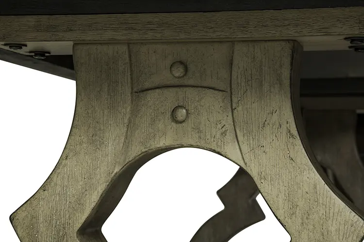 • Crafted of rubberwood solids and cathedral white oak veneers