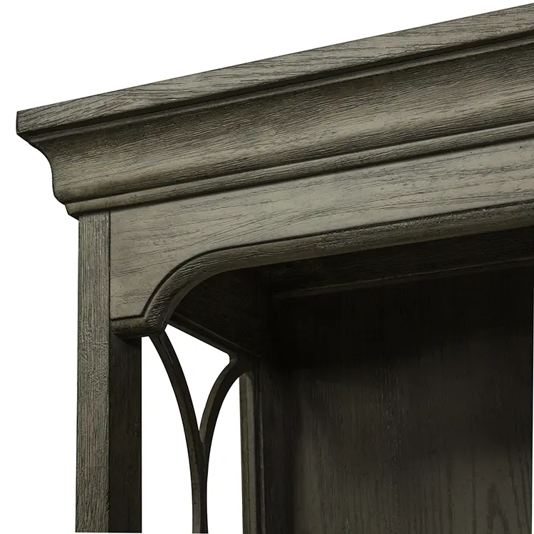 • Hutch has nine fixed shelves with open grid pattern on the side panel
