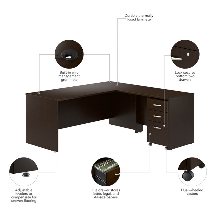 The Bush Business Furniture Series C 72" W L-Shaped Desk with 42" W Return and Mobile File Cabinet offers a commercial quality workspace solution with the style and functionality today's professionals demand.