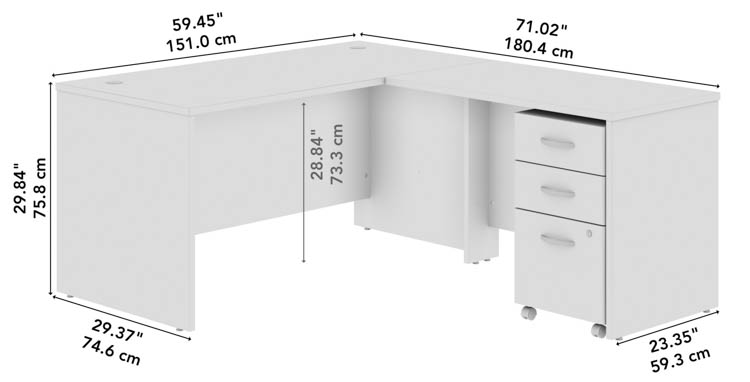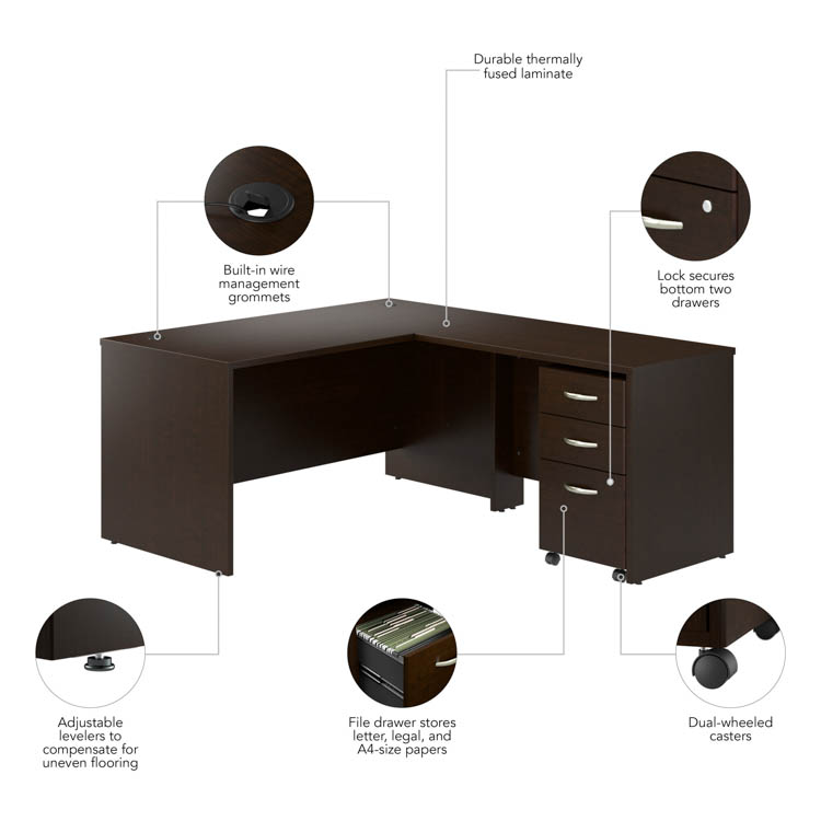 The Bush Business Furniture Series C 60in W L-Shaped Desk with 42in W Return and Mobile File Cabinet offers a commercial quality workspace solution with the style and functionality today's professionals demand.