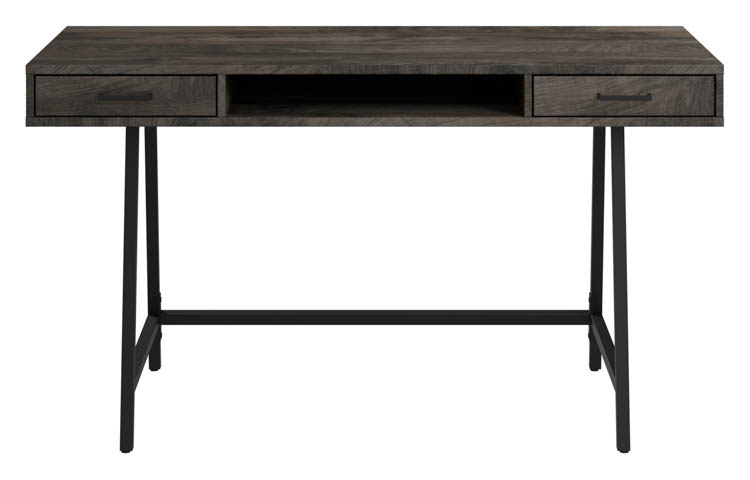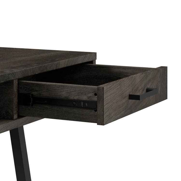 • Writing desk with storage boasts industrial styling that adds a unique touch to a variety of interiors