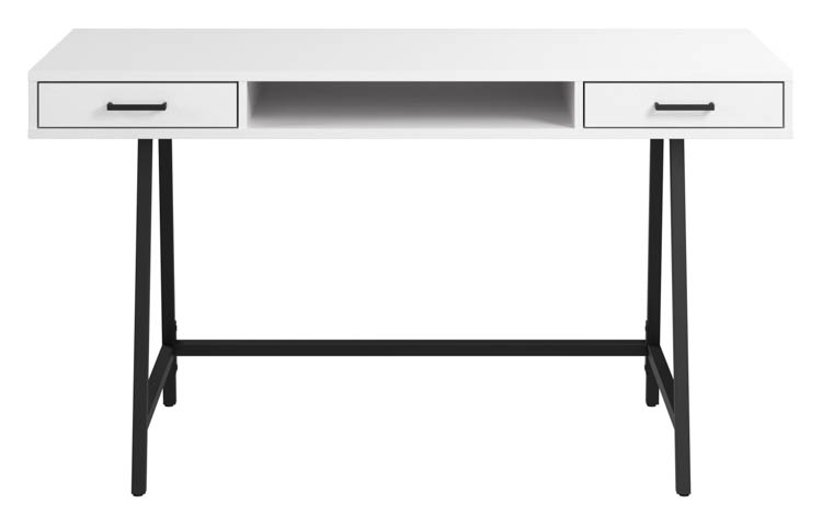 • Writing desk with storage boasts industrial styling that adds a unique touch to a variety of interiors
