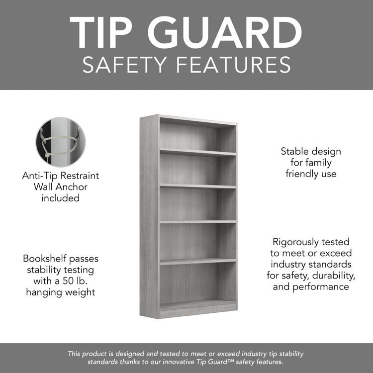 This tall 5 tier bookshelf has been meticulously tested to meet or exceed ANSI/BIFMA quality standards for safety and performance.