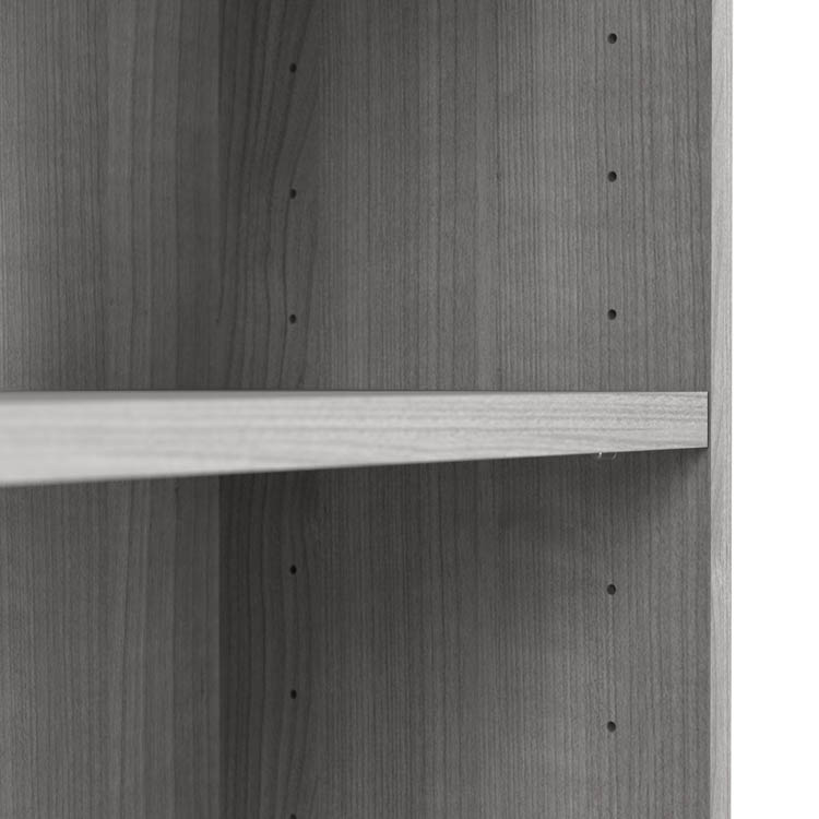 Three adjustable shelves move up and down to accommodate larger items like reference materials, binders and photo albums while two fixed shelves offer added stability.