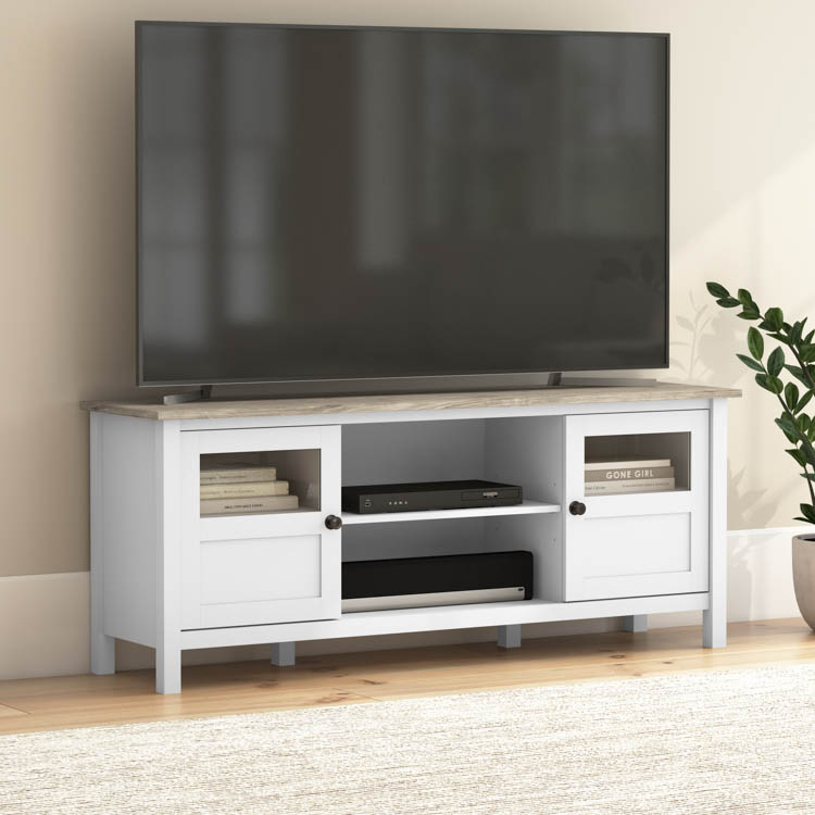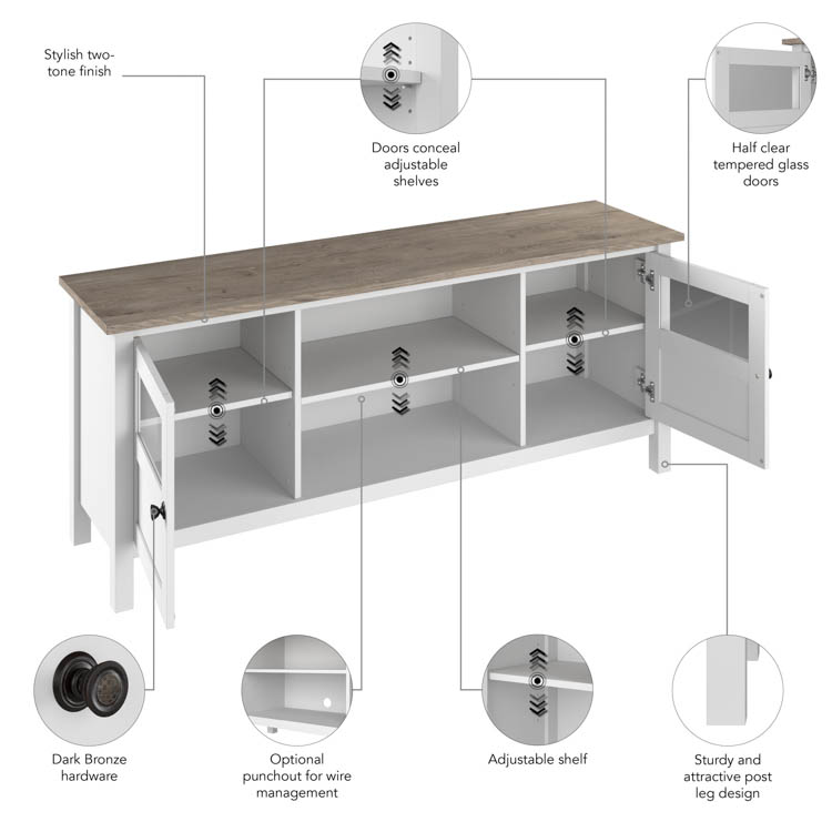 The Bush Furniture Mayfield 60"W TV Stand is a great way to organize any room or living space while invoking the cozy, welcoming charm of modern farmhouse styling.