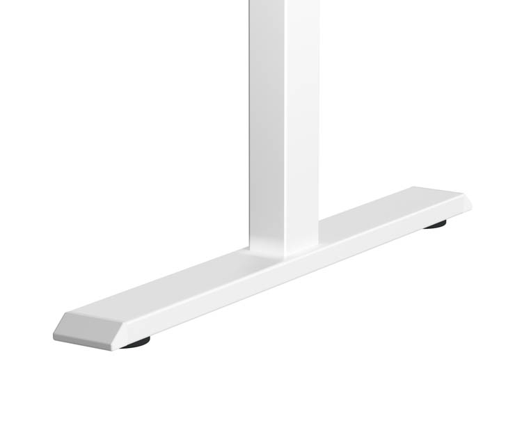 The ergonomic desk's small 55" W x 24" D footprint is ideal for working in areas where space is limited, and the base includes adjustable levelers to compensate for uneven floors and maintain stability on any surface.