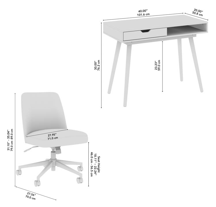 • Bundle includes: 40" W x 20" D Small Writing Desk, Mid Back Armless Office Chair