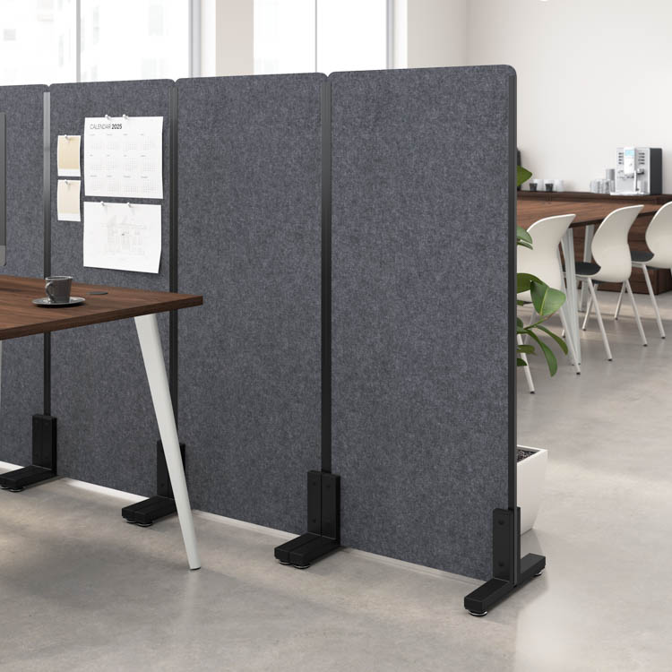 Choose from Warm Beige cubicle panels with White feet or Cool Charcoal panels with Black feet to find the perfect look for any space.