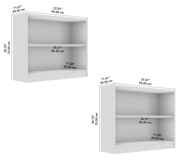 Each Bookcase Dimensions: 37.01" W x 11.61" D x 29.72" H.