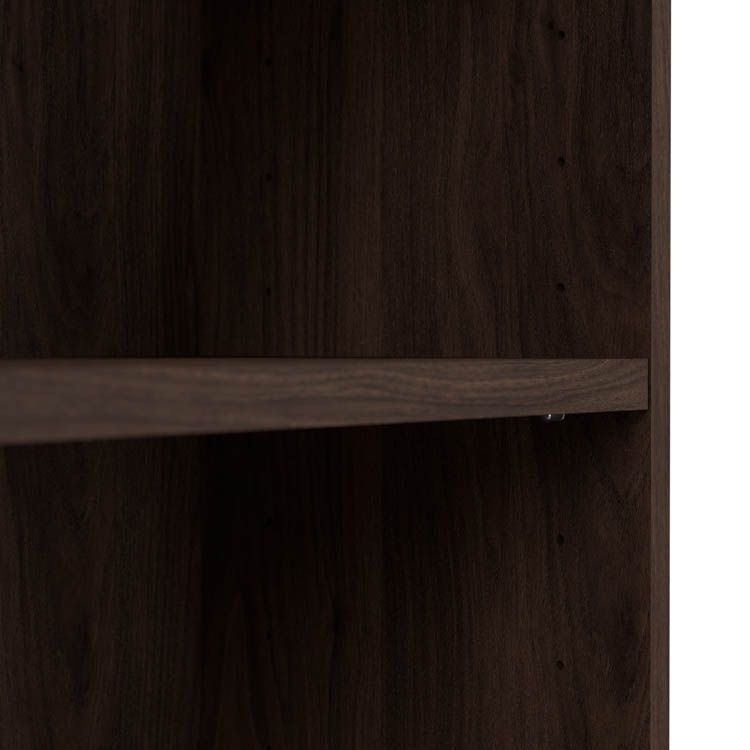 A one-inch thick adjustable shelf moves up and down to accommodate larger items like reference materials, binders and photo albums while one fixed shelf gives the low bookcase added stability.