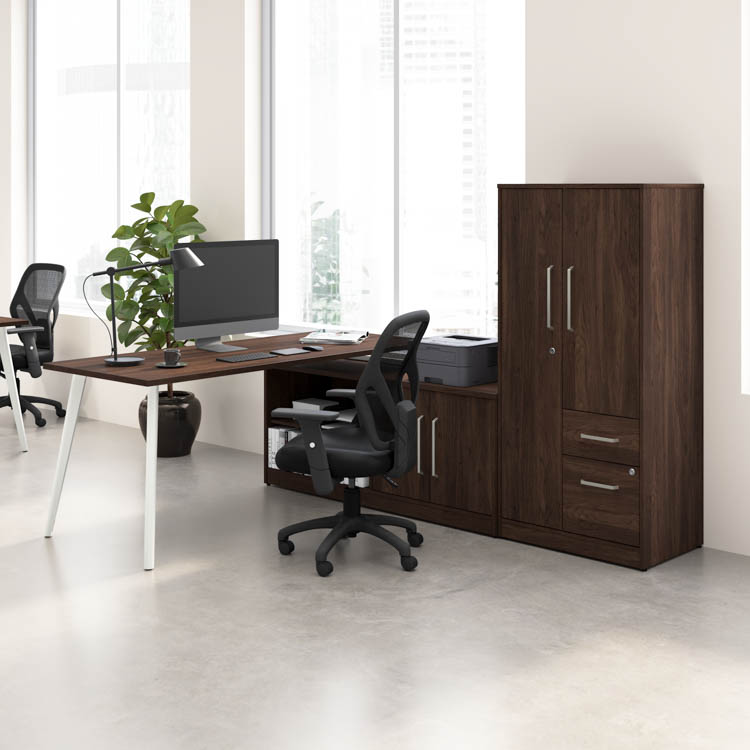 Desk Return attaches to low storage cabinet to form a right or left-handed L-Shaped Desk.
