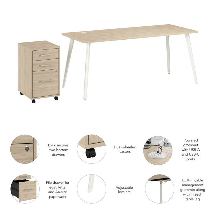 72in W Desk with Splayed Metal Legs and 3 Drawer Mobile File Cabinet (Assembled) by Bush Furniture