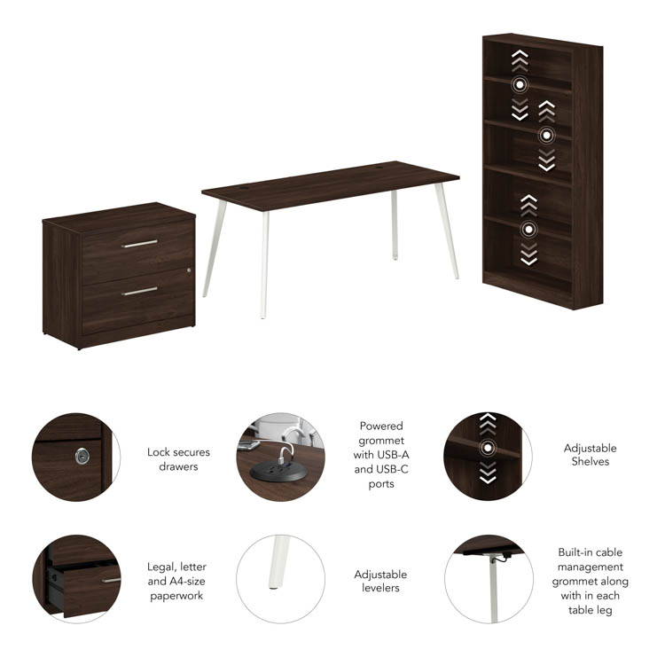 72in W Desk with Splayed Metal Legs, Lateral File Cabinet (Assembled), and Bookcase by Bush Furniture