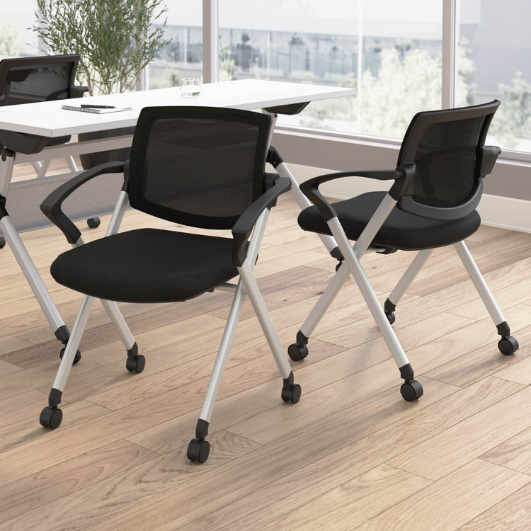 Dual-wheeled casters allow the office chair set to be set up and rearranged at a moment's notice.