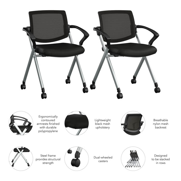 Mesh Back Nesting Chairs with Arms - Set of 2 by Bush Furniture