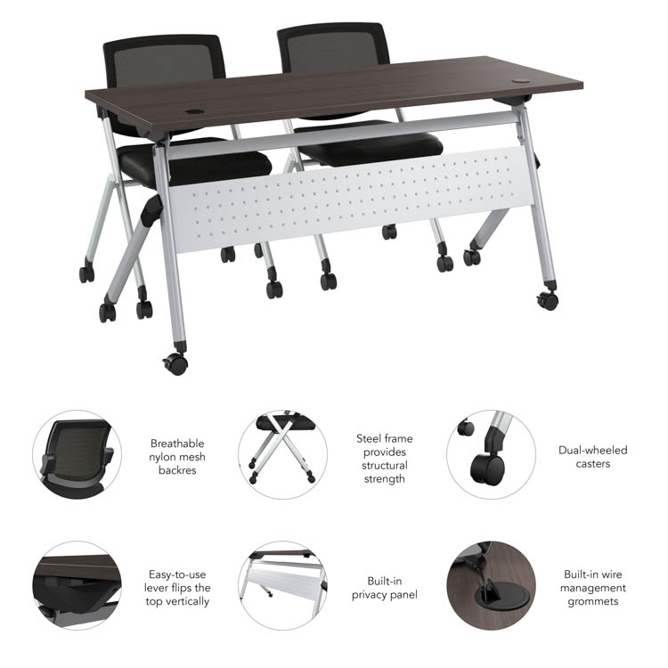 • Bundle includes: 60" W Folding Training Table, Mesh Back Folding Chairs - Set of 2