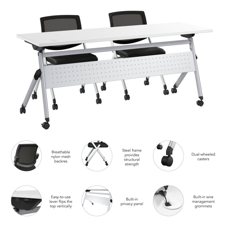 • Bundle includes: 72" W Folding Training Table, Mesh Back Folding Chairs - Set of 2